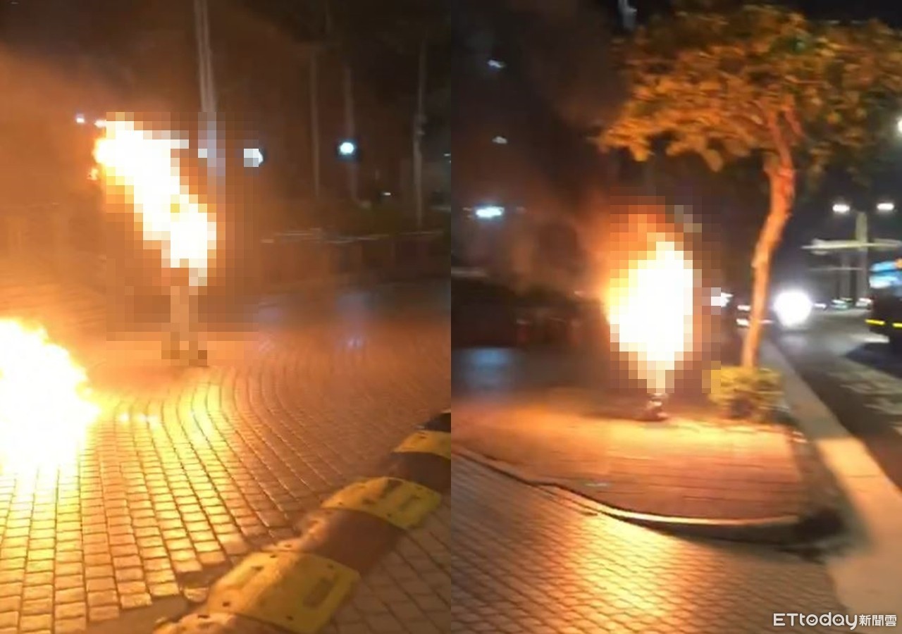 ▲中年男子點火自焚,上半身燃燒。(圖/記者黃彥傑翻攝)