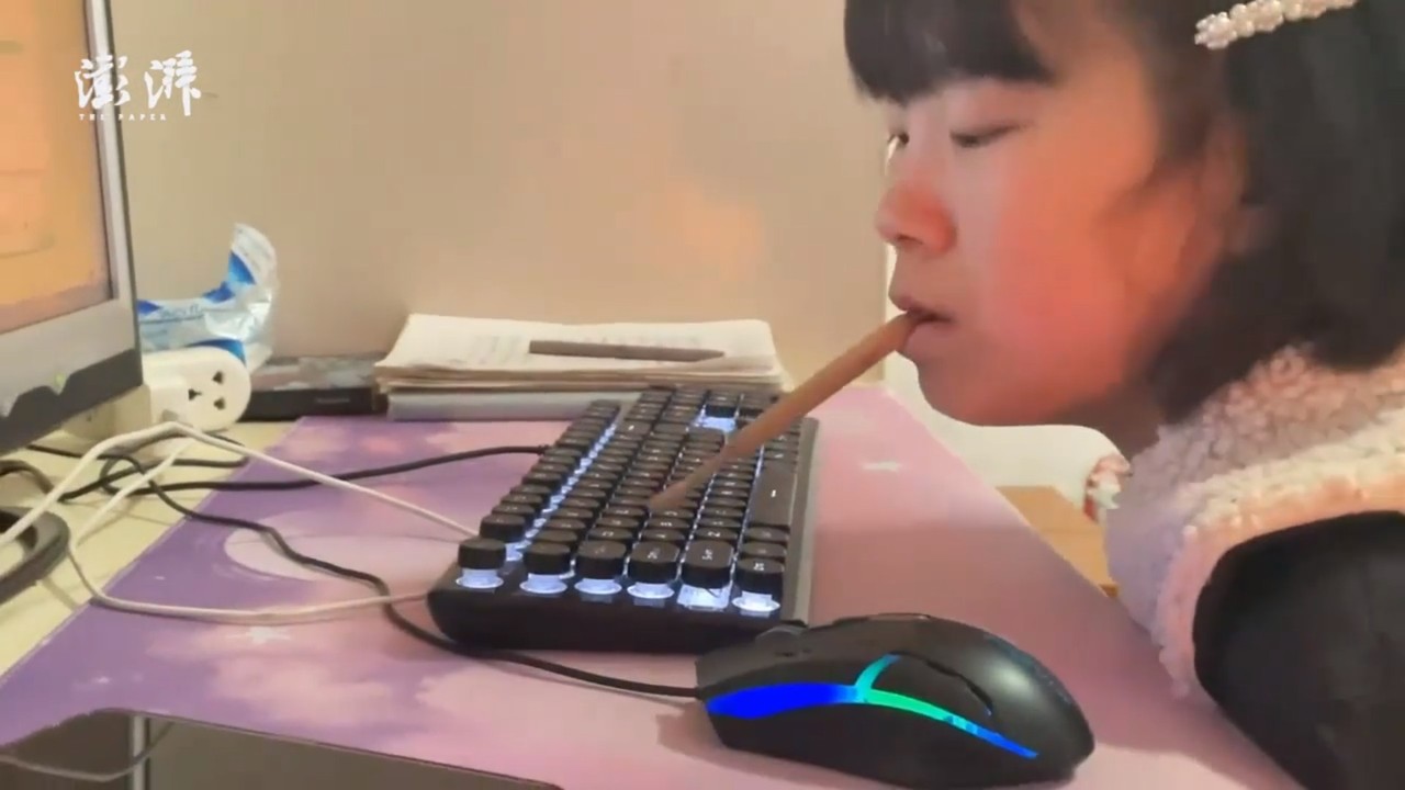 綜合陸媒報導,張姓女子平常就以嘴含著木棍打字,用下巴移動滑鼠來進行創作,但長時間下來,嘴巴經常磨出血泡,木棍也必須定期更換。母親表示,女兒在早產後被判定腦幹受損,四肢行動不便,直到小學畢業期間,甚至每天都背著她上下學,但她記性特別好也很聰明。