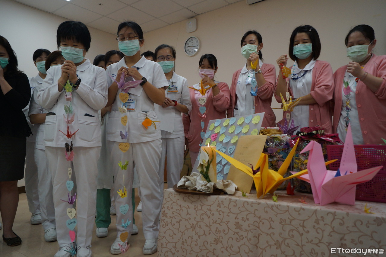 ▲台南市立安南醫院護理部護理人員,為鐘護理師集氣祈禱,並摺出2千隻紙鶴,紙鶴數量加倍,集氣也加倍,祈求鐘護理師度過難關早日清醒。(圖/記者林悅翻攝,下同)