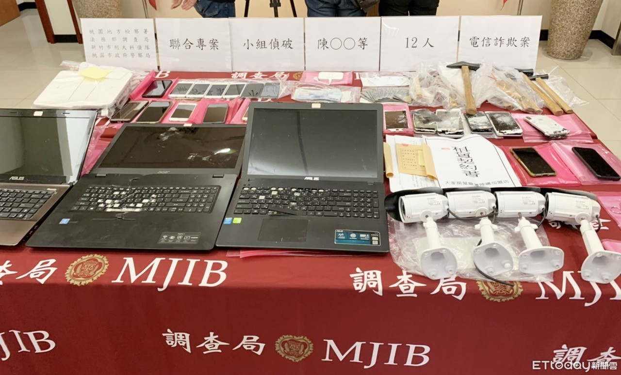 調查人員衝入農舍後,陳男等人發覺被警方與調查人員突破,立即以榔頭敲破犯案用IPhone手機與電腦企圖湮滅證據,現場查獲12名成員,查扣手機、電腦、電話卡、監視器、現金等證物,陳男還在屋內供奉財神。