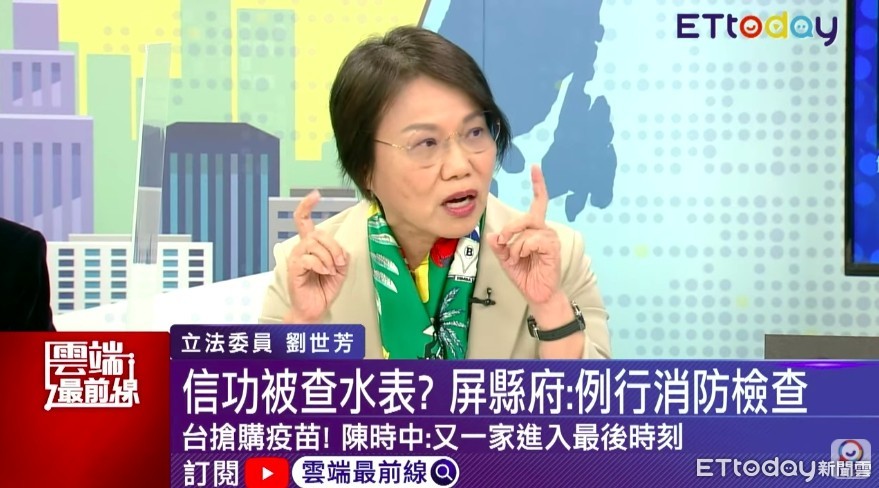 行政院長蘇貞昌日前在立院接受國民黨立委蔣萬安質詢時,提及屏東「信功肉品」支持政府政策,遭業者發聲明反駁;不料,隔日竟傳出消防局登門「查水表」質疑,屏縣府則澄清是例行檢查。對此,民進黨立委劉世芳3日在ETtoday《雲端最前線》中分析,藍營12次阻擋蘇施政報告、丟豬內臟,都屬政治性動作,但信功一事「應該不是」,政府不會這樣處理,「我覺得不要把它小題大作了」。