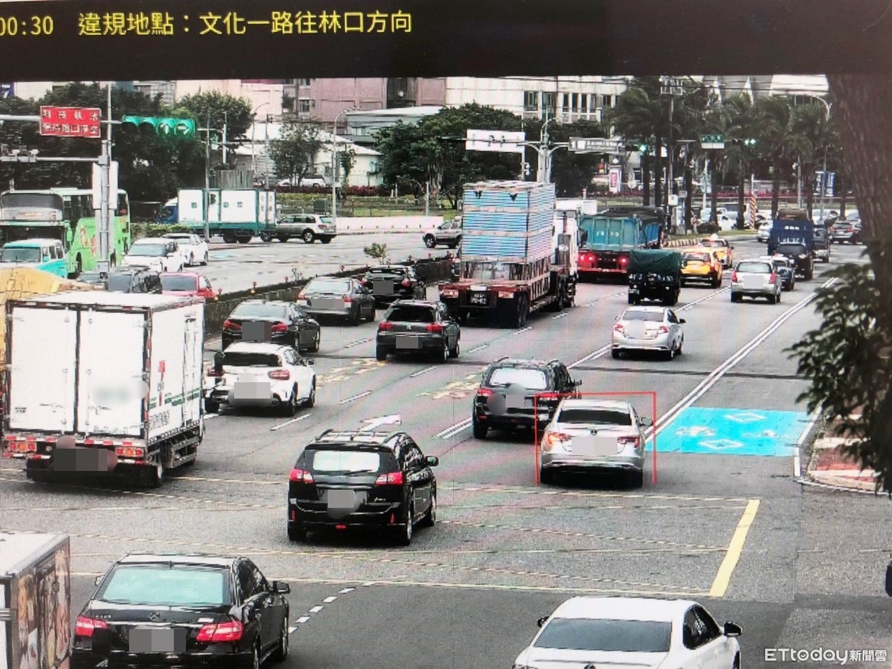 ▲桃園市交通局在林口交流道架設科技執法監控系統,未依標線行駛違規車輛仍居絕大多數。(圖/記者沈繼昌翻攝)