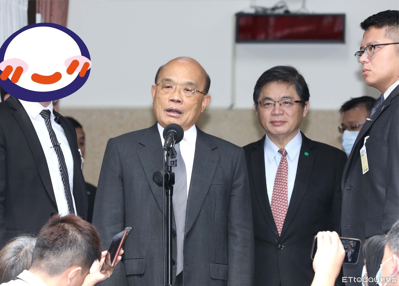 ▲行政院長蘇貞昌接受媒體採訪,身旁隨扈(左)的帥氣外型引起網友討論。(圖/記者屠惠剛攝)