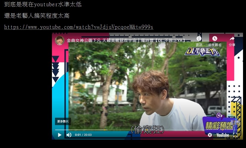 原PO說,「這50路天王完全放飛自我,到處開黃腔,路邊的老伯隨便訪問都超好笑」,讓他忍不住問,「到底是現在的youtuber水準太低,還是老藝人搞笑程度太高?」