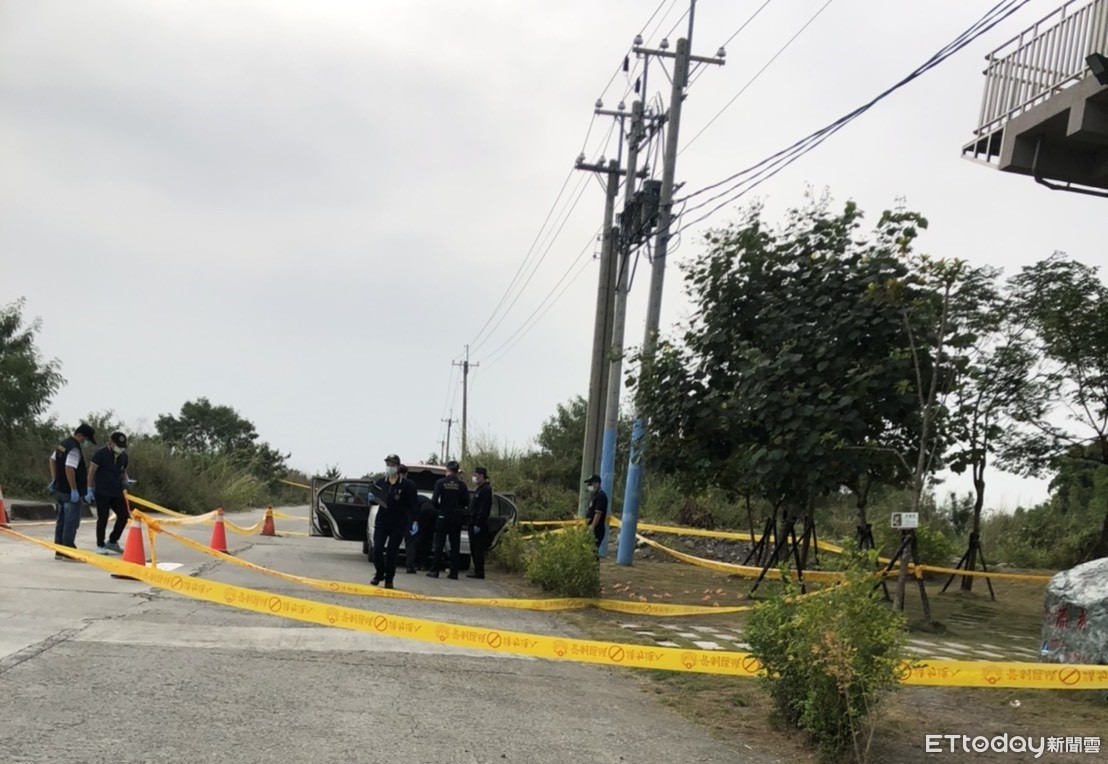 ▲高雄高屏溪旁車內發現4具屍體,警方封鎖現場調查中。(圖/記者吳世龍翻攝)