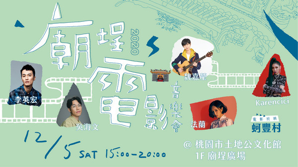「廟埕電影音樂會」將於12月5日於土地公文化館1樓廟埕熱鬧舉行,當天安排眾多歌手接力演出,除了演唱電影音樂相關曲目,同時也將演唱自己創作的歌曲。當天除了音樂會的演出之外,周邊還有抽獎活動、以及爆米香與咖啡飲品透過粉絲團打卡按讚做限量兌換。晚間還將放映好評不斷的在地電影《蚵豐村 Ohong Village》,誠摯邀請民眾一起來感受全方位的視聽饗宴!詳細活動資訊請上「桃園市土地公文化館」或「桃園電影節」臉書專頁查詢。