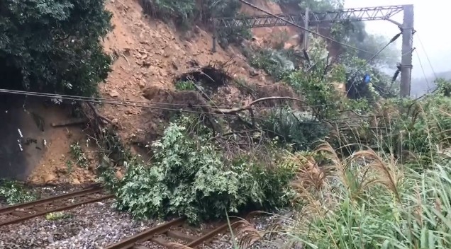 ▲台鐵軌道邊土石大規模滑動。(圖/翻攝東森新聞)