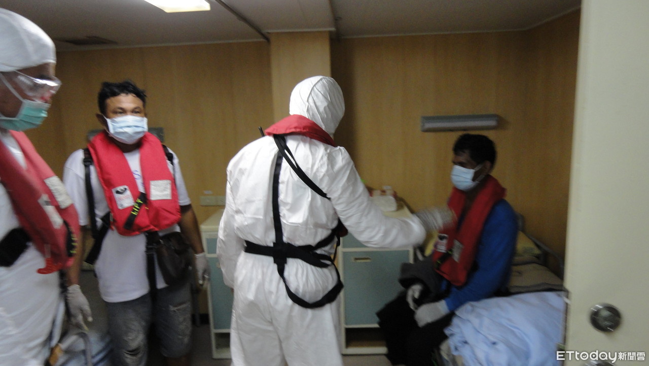 因應嚴重特殊傳染性肺炎防疫期間,巡護七號船於傷患接駁前已先行確認人員體溫狀況無異常,登船後立即送至船上防疫隔離病房安置,海巡艦艇接駁過程中均依規定全程穿戴口罩、防護衣等防疫裝備,以落實防疫作為,確保全船人員安全,避免群聚感染發生。