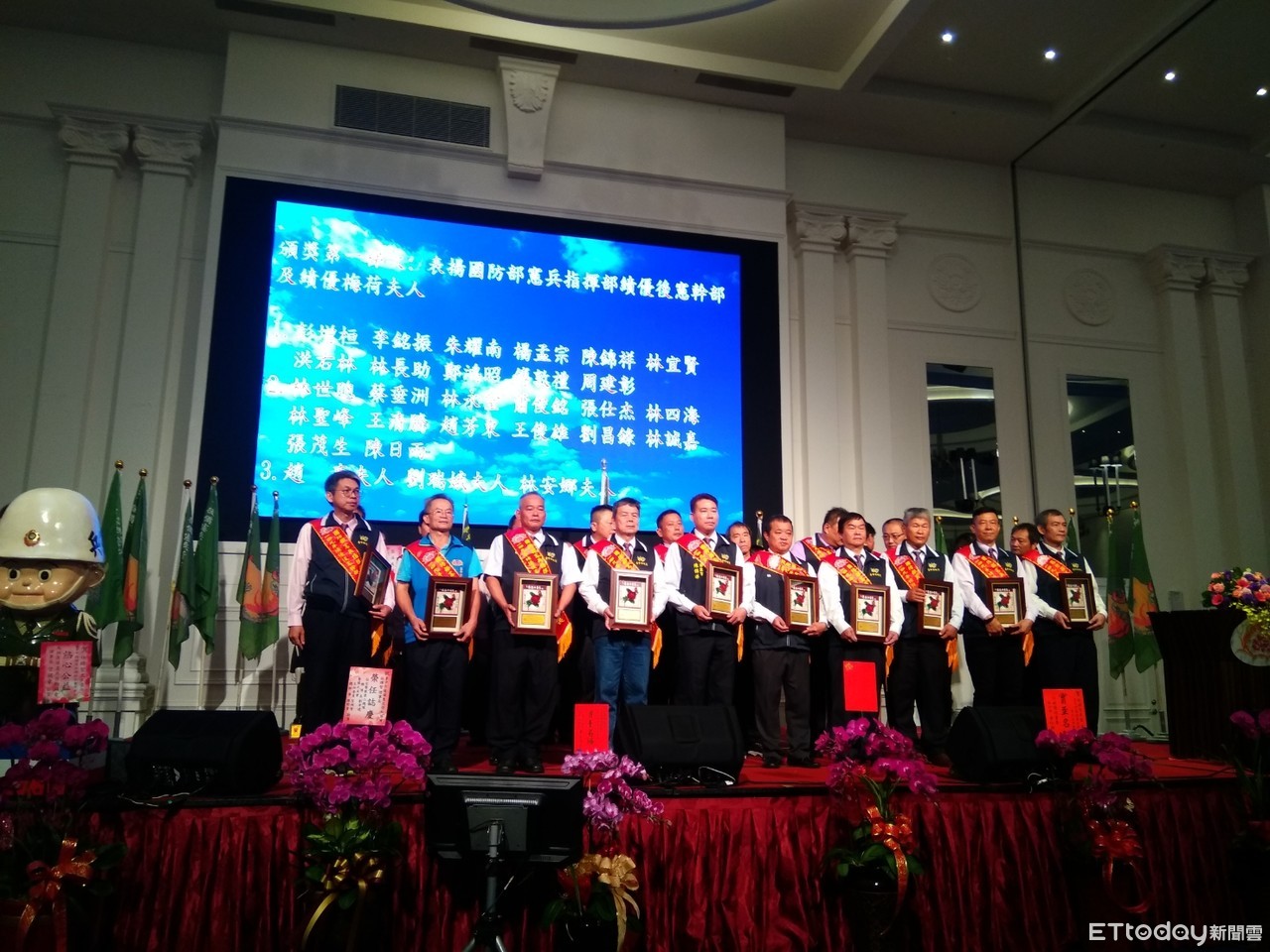 台中市後備憲兵荷松協會舉辦新、卸任理事長交接暨授證典禮,由後備憲兵荷松總會長謝慶堂布達監交,市長盧秀燕親臨授證,接任第9屆理事長林暉智,代表協會捐贈10萬元給消防局龍井分隊充實消防設備,現場超過上千位來賓參與,場面盛大。