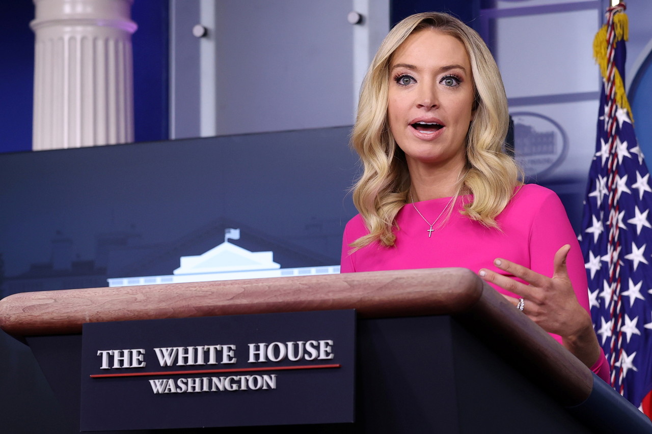 ▲白宮女新聞秘書麥肯內妮一句「是賀錦麗!」的發言,等於間接承認了川普敗選。(圖/路透)