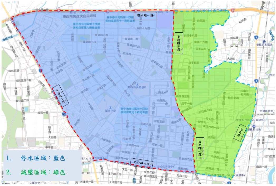 2. 影響里別:(北屯區) 后庄里,四民里,陳平里,忠平里,大德里,仁和里,松竹里,平陽里,平和里,平福里,同榮里,仁愛里,水湳里,仁美里,平心里。(西屯區)港尾里。