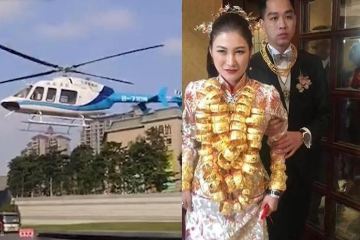 ▲新郎派直升機迎娶「鍍金新娘」。(圖/翻攝自沸點視頻)