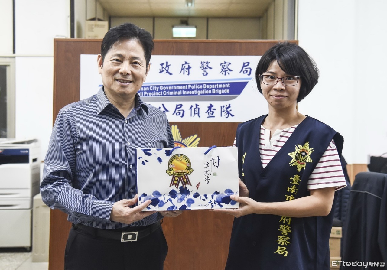 ▲台南市警局長詹永茂,親赴佳里警分局慰勉基層員警,並頒發破案獎金與破案茶,給予佳警肯定。(圖/記者林悅翻攝,下同)