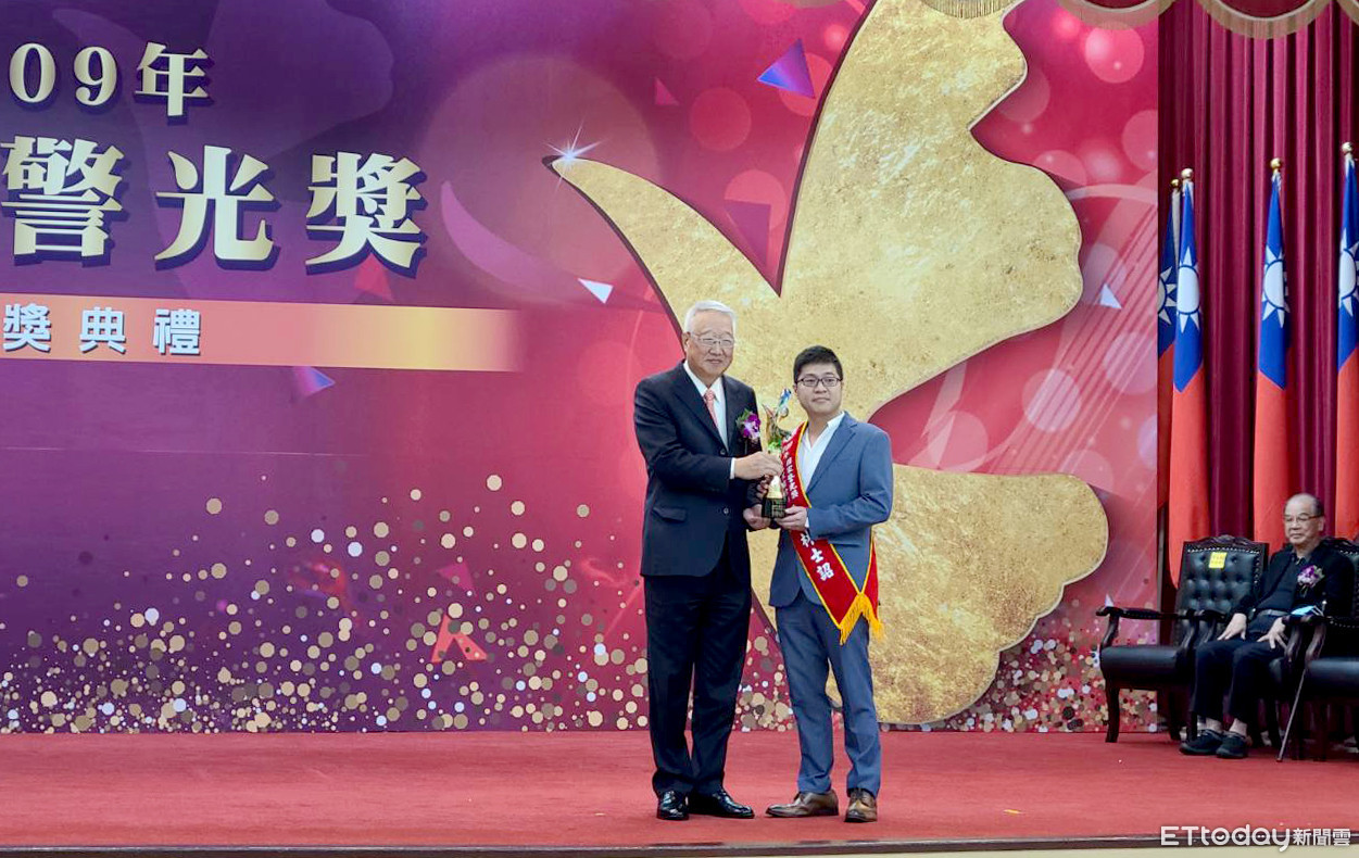 ▲警光獎8日下午在警政署頒發,台北市大安分局偵查隊警務員林士詔獲頒反黑肅槍組優良獎。(圖/記者張君豪翻攝)