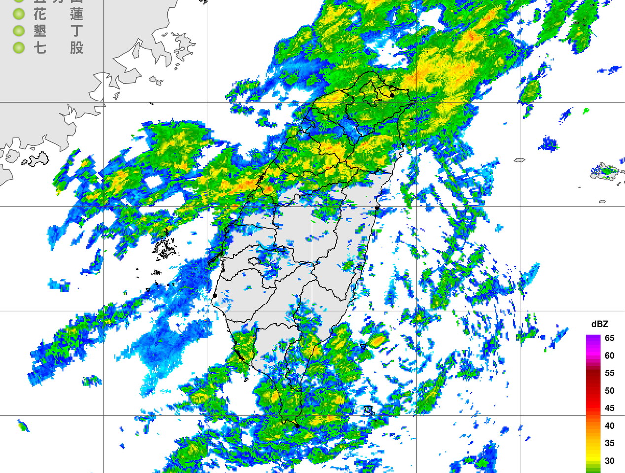 ▲今晨雷達回波圖顯示,台灣附近水氣很多。(圖/氣象局)