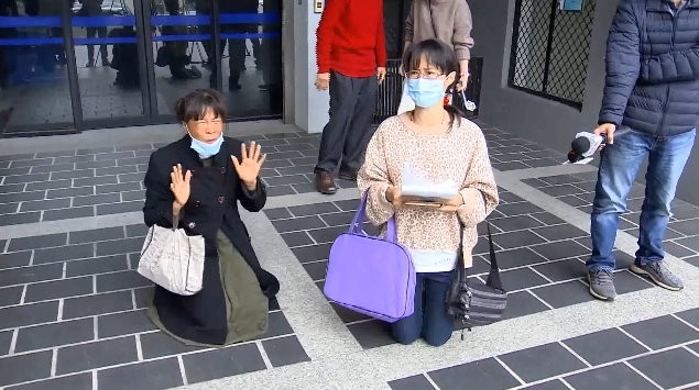 ▲邱男母親和姐姐下跪,求大家幫幫他們。(圖/東森新聞)