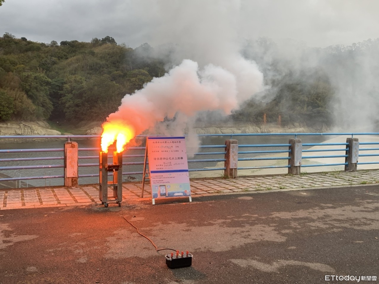 ▲水利署8日下午3時左右,同步在石門、寶二、永和山、明德水庫各燃放2支焰劑,實施人工增雨。(圖/記者黃孟珍翻攝)
