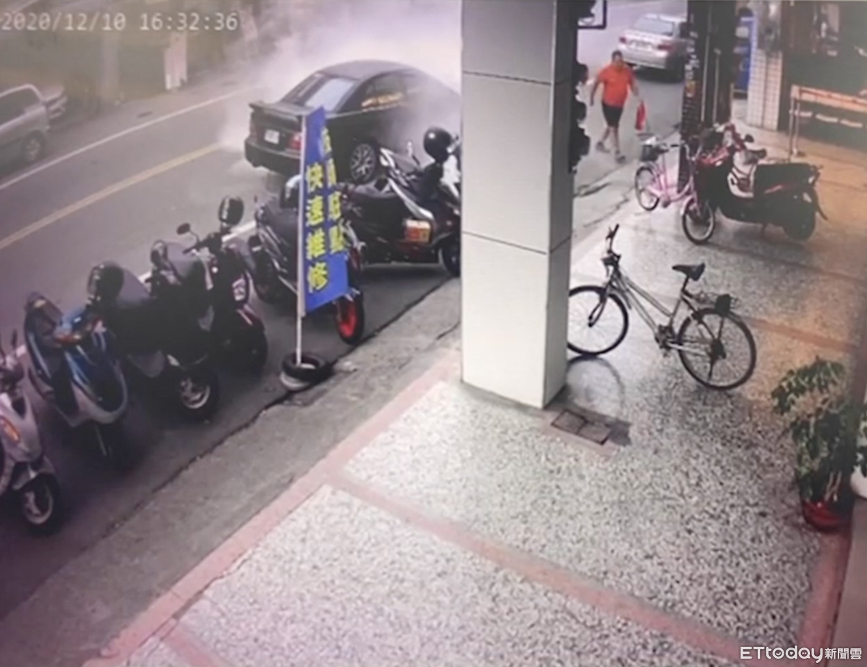 ▲附近民眾發現,隨即見義勇為,一把抓著店裡的滅火器就幫忙灌救。(圖/記者蔡佩旻翻攝)