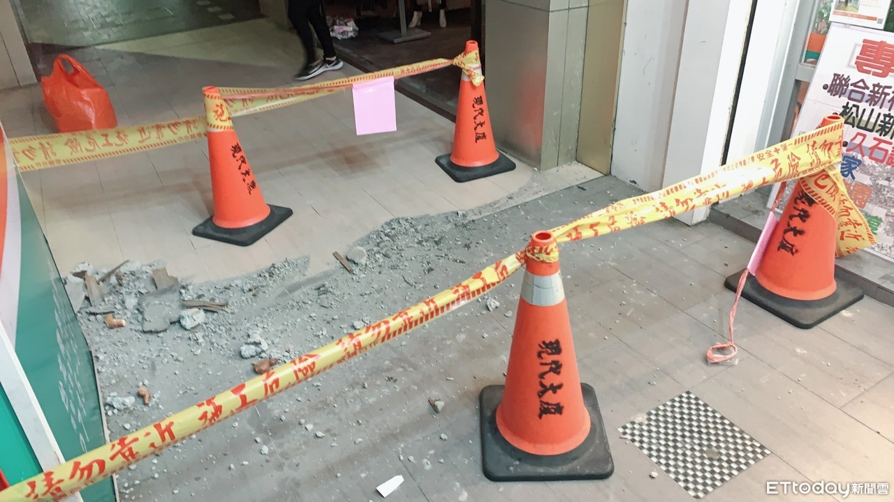 據了解,受到劇烈搖晃影響,台北市松山區南京東路一處大樓牆面龜裂,水泥石塊掉落在人行道上,現場一片狼藉,看起來十分可怕。消防人員接獲報案,派遣車屬前往察看,發現磁磚、石塊脫落,拉起封鎖線,初步判定結構並無損壞,後續交由屋主自行修繕。
