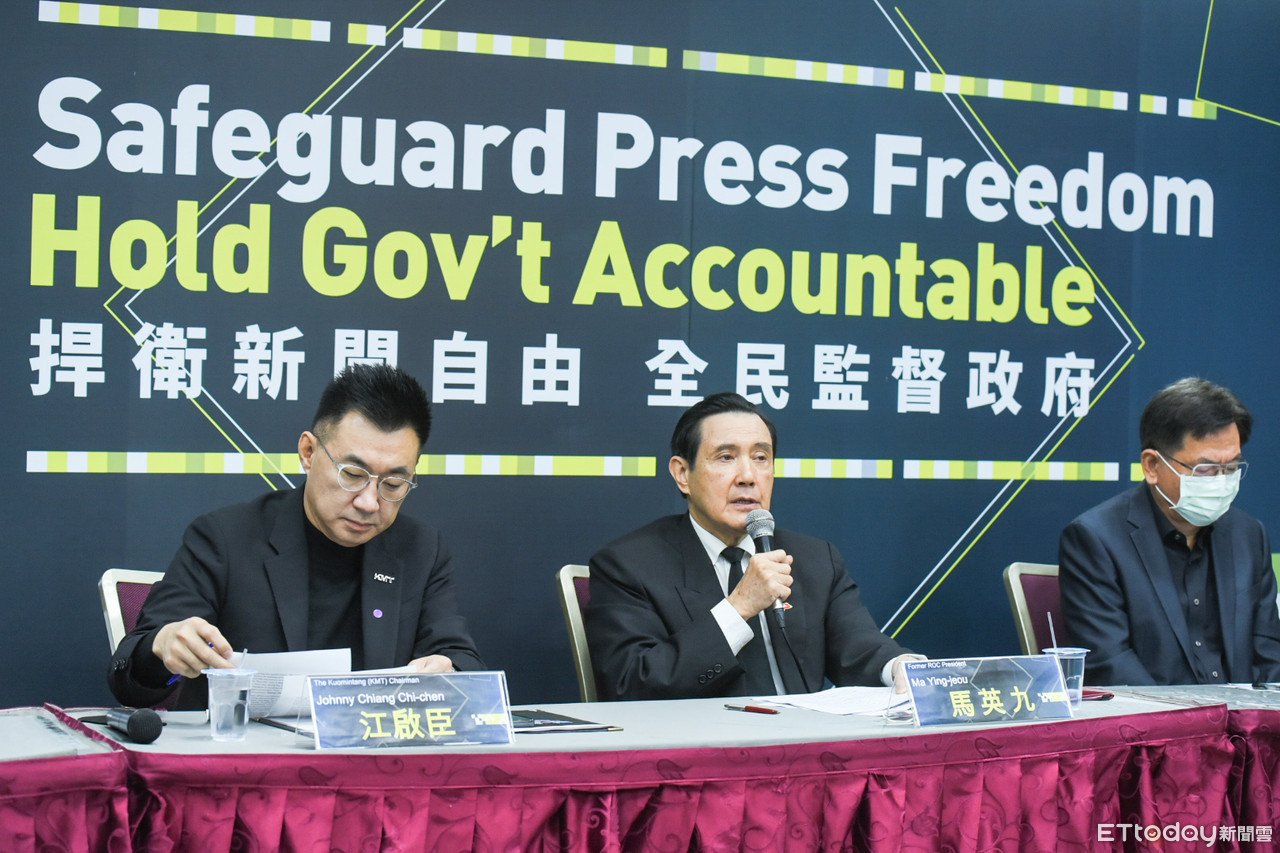 ▲國民黨主席江啟臣、前總統馬英九出席「捍衛新聞自由」國際記者會。(圖/記者林敬旻攝,下同)