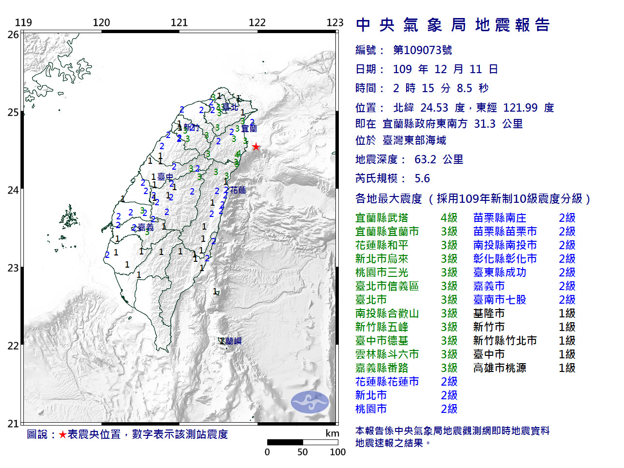 ▲今凌晨又有規模5.6地震。(圖/氣象局)