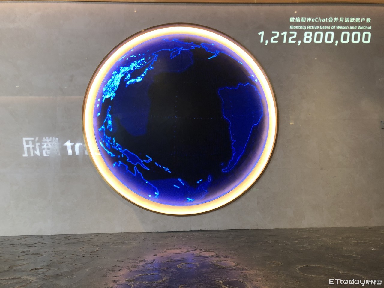 ▲深圳騰訊總部內顯示微信實時上線人數及總用戶數。(圖/記者魏有德攝)