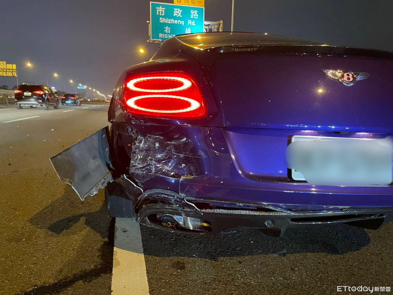 昨日晚間7點多,50歲張姓男子開著去年貸款,2012年出廠的藍色賓利GT V8房車出門。他行經中彰快速道路西屯段往南接近市政路匝道口時,疑似想下匝道,發現車陣太長,先快速往右切一個車道後又急往左切。結果,後方31歲王姓男子開的白色福特FOCUS小客車反應不及,右前車頭撞上賓利左後保桿。