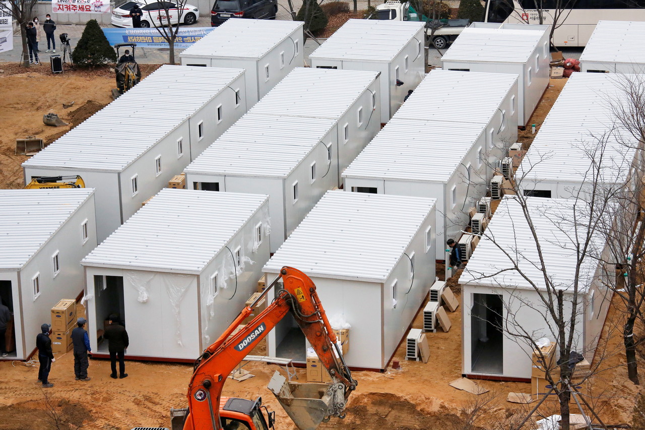 ▲南韓重症病床嚴重不足,當局緊急在首爾醫療院空地蓋起方艙醫院。(圖/路透社)