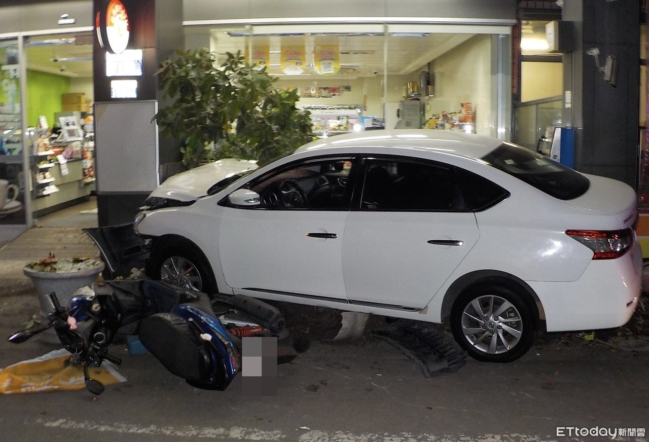 ▲陳男疑疲勞駕駛,不慎撞上超商騎樓柱子 。(圖/記者白珈陽翻攝)