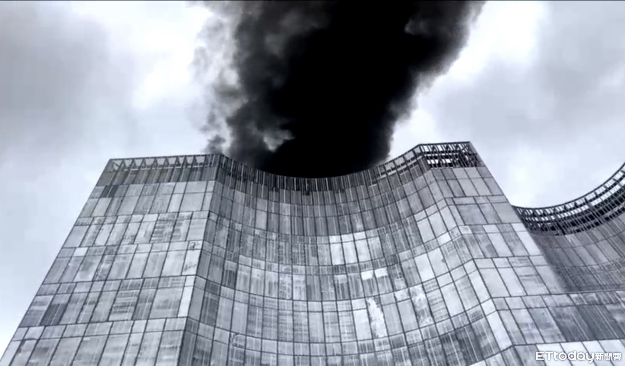 ▲台北市中正區八德路一段一處工地發生火警,濃厚黑煙直竄天際,警消搶救中。(圖/記者張君豪翻攝)