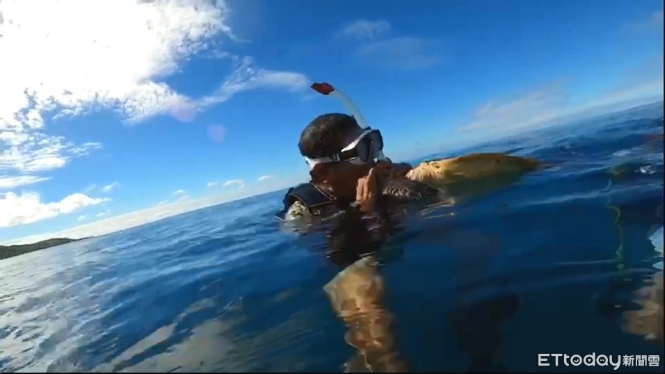 曾教練指出,當他回程繼續教學時,一下水又發現有一隻綠蠵龜誤觸「同個漁網」,因此趕緊拿出小刀割破,將綠蠵龜救出,讓其游回海中,並與學員將剩餘漁網帶往岸上,而他也呼籲相關單位應重視「漁網實名制」避免危害海洋生物。