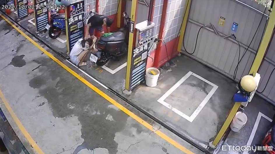 ▲少女和友人到自助洗車場洗電動機車。(圖/記者許宥孺翻攝)
