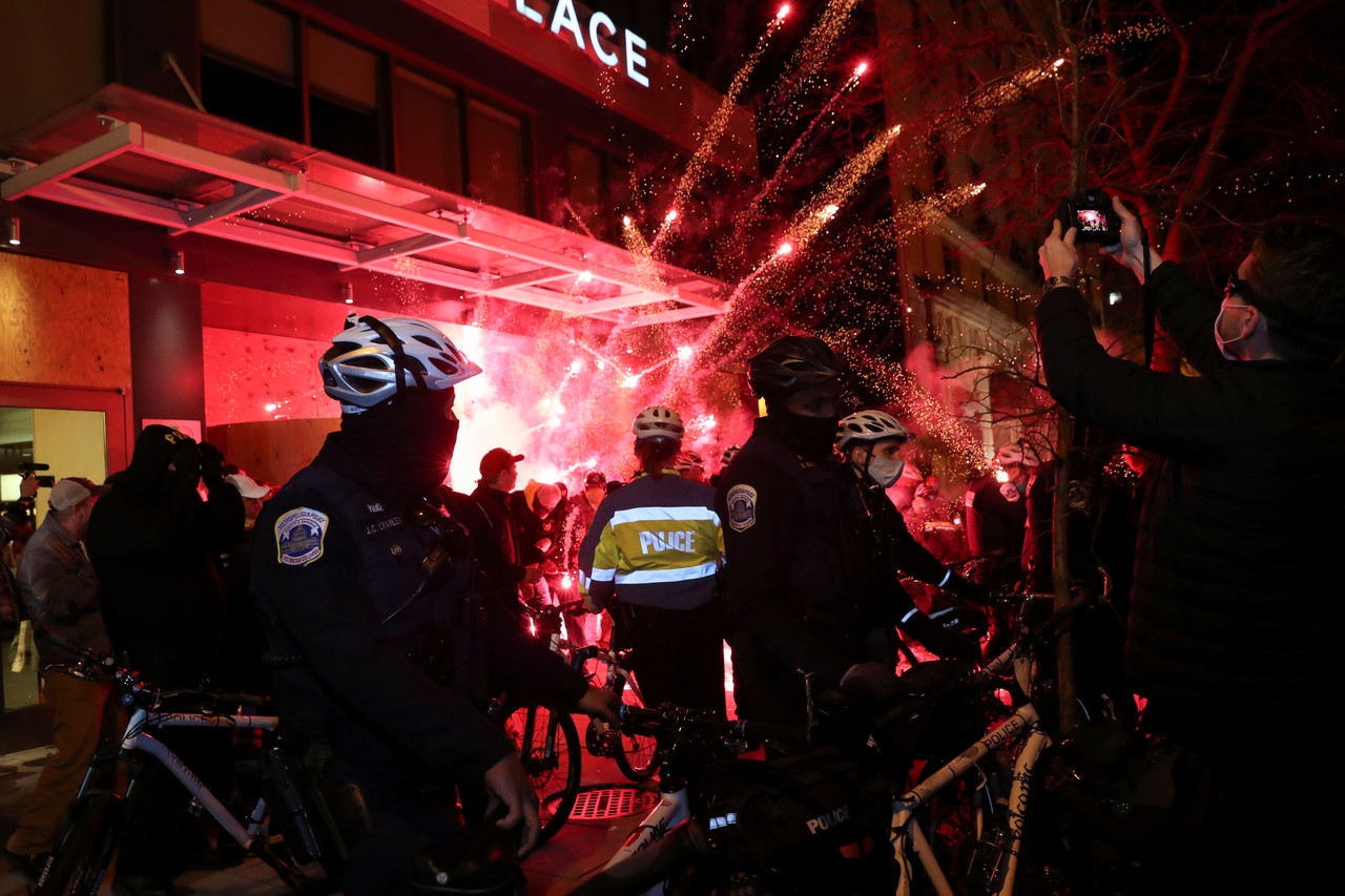 根據ABC報導,川普支持者和多個保守派團體12日白天在華府舉辦示威遊行,儘管有大批警力駐守,仍在晚間升級為暴力衝突,包含極右翼白人民族主義團體「驕傲男孩」(Proud Boys)的成員在內共4人遭嚴重刺傷,目前仍在醫院觀察,還有5人受傷送醫。華盛頓特區市長辦公室指出,截至當天晚上9時共有23人遭逮捕。