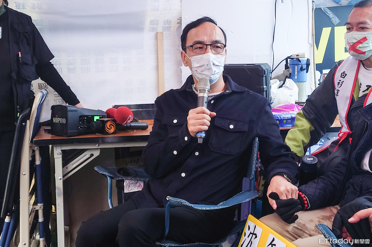 ▲朱立倫聲援反萊豬絕食靜坐、探視發起人沈智慧。(圖/記者林敬旻攝)