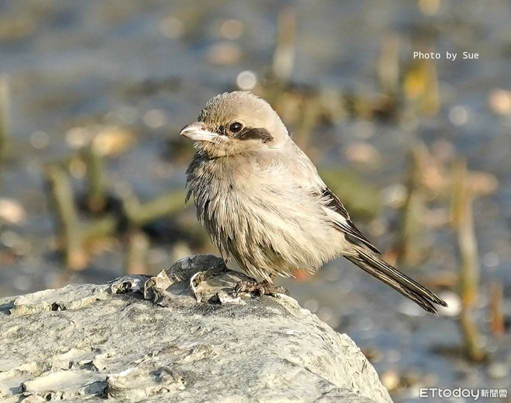 ▲鳥友拍攝到台南市北門區八掌溪迷鳥「灰伯勞」,健康狀況好轉,並能捕獵小蝦子,顯示活動力尚佳。(圖/鳥友吳素娥提供,下同)