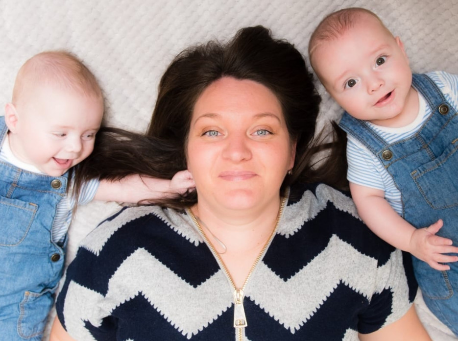 ▲凱薩爾生下一對雙胞胎男嬰,目前已經7個月大。(圖/翻攝自臉書/Lucy Kelsall)