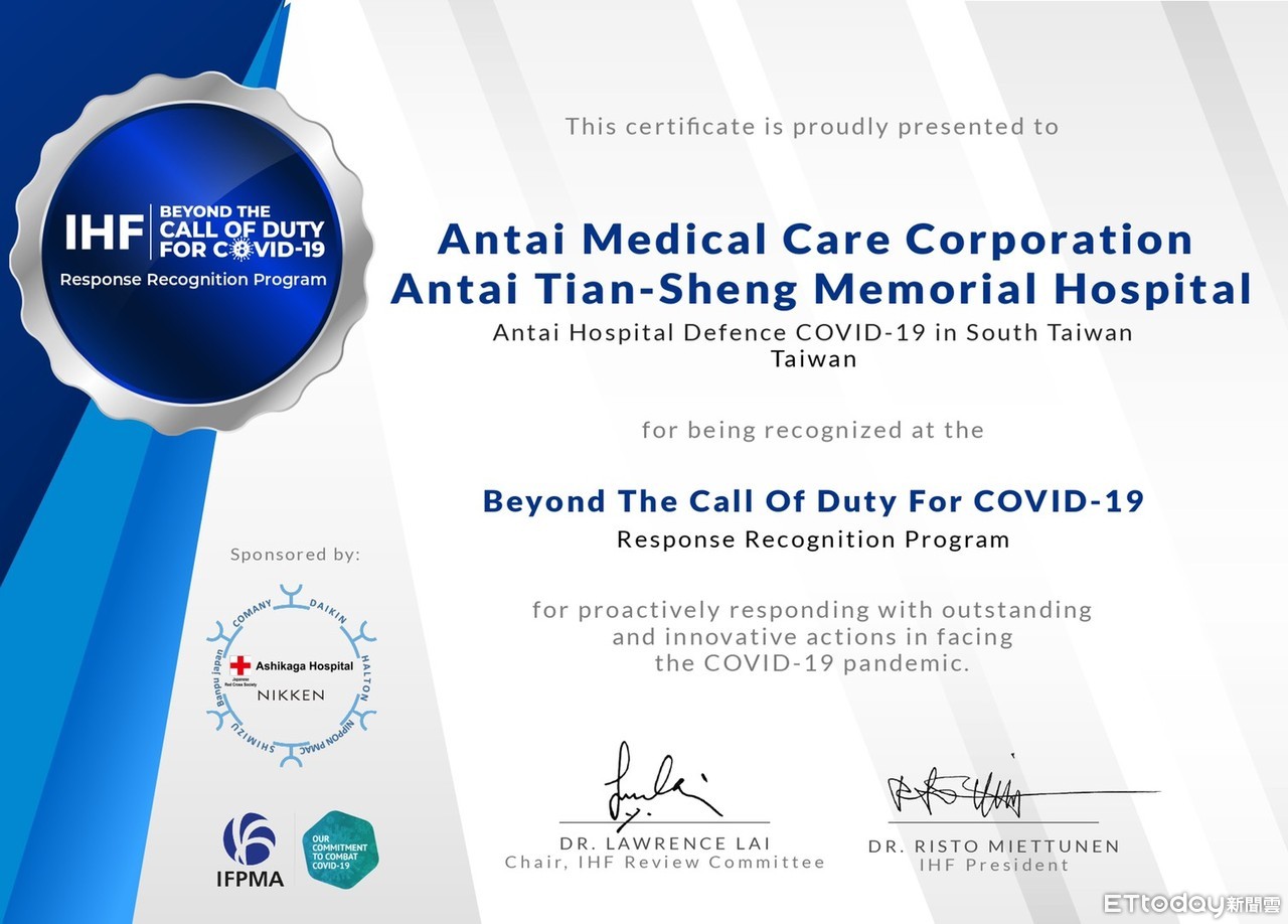 屏東安泰醫院防疫新冠炎卓越表現,獲IHF國際醫院聯合會專欄報導並獲獎,讓世界看見台灣,IHF 全世界獲獎有28個國家的103家醫院,台灣有3家,安泰是台灣最南端的唯一重度級急救責任醫院,在疫情期間,除了面對接踵而至的村民就醫和新型冠狀病毒的威脅外,還必須維護其一線醫務人員的安全,獲得肯定,對醫院是一項非常大的肯定。
