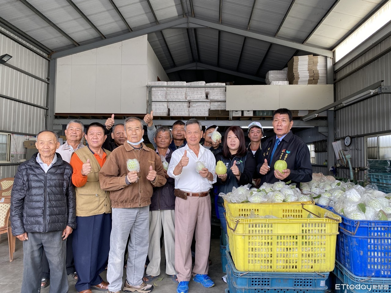 ▲新港鄉芭樂產地占地50公頃,鄉長林茂盛(前排右1)及當地農會總幹事林雅欣(前排右2)力薦。(圖/記者翁伊森翻攝)