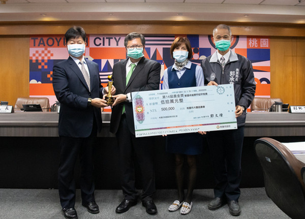 而為鼓勵農業金融體系穩健經營,農委會辦理農業金融獎選拔,今年桃園在第14屆農金獎表現卓越,觀音區農會榮獲「重設信用部經營績效獎」特優獎、龜山區農會榮獲「農業金庫策略合作獎」優等獎,大園區農會榮獲「營運卓越獎甲組」甲等獎;鄭市長分別頒發觀音區農會75萬元、龜山區農會60萬元及大園區農會50萬補助金。