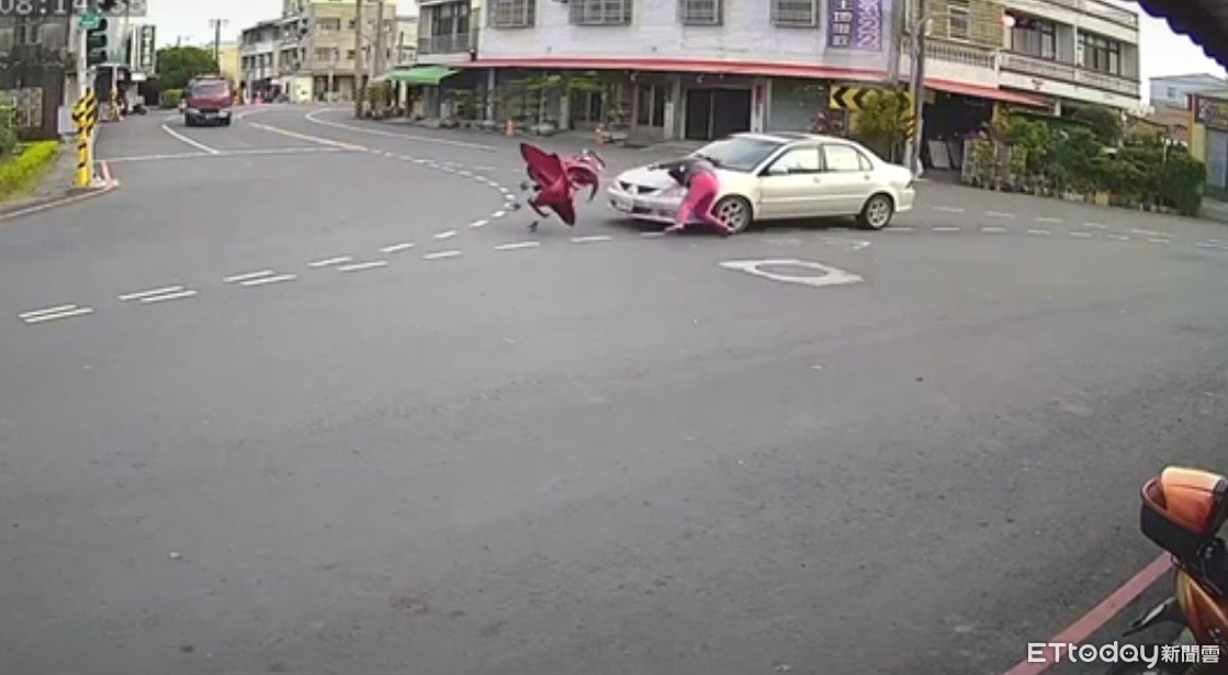 ▲錢姓婦人推著嬰兒車載7個月大女嬰,在六甲區中華路與七甲街路口,欲穿越道路時,被羅姓女子所駕自小客車撞飛。(圖/記者林悅翻攝,下同)