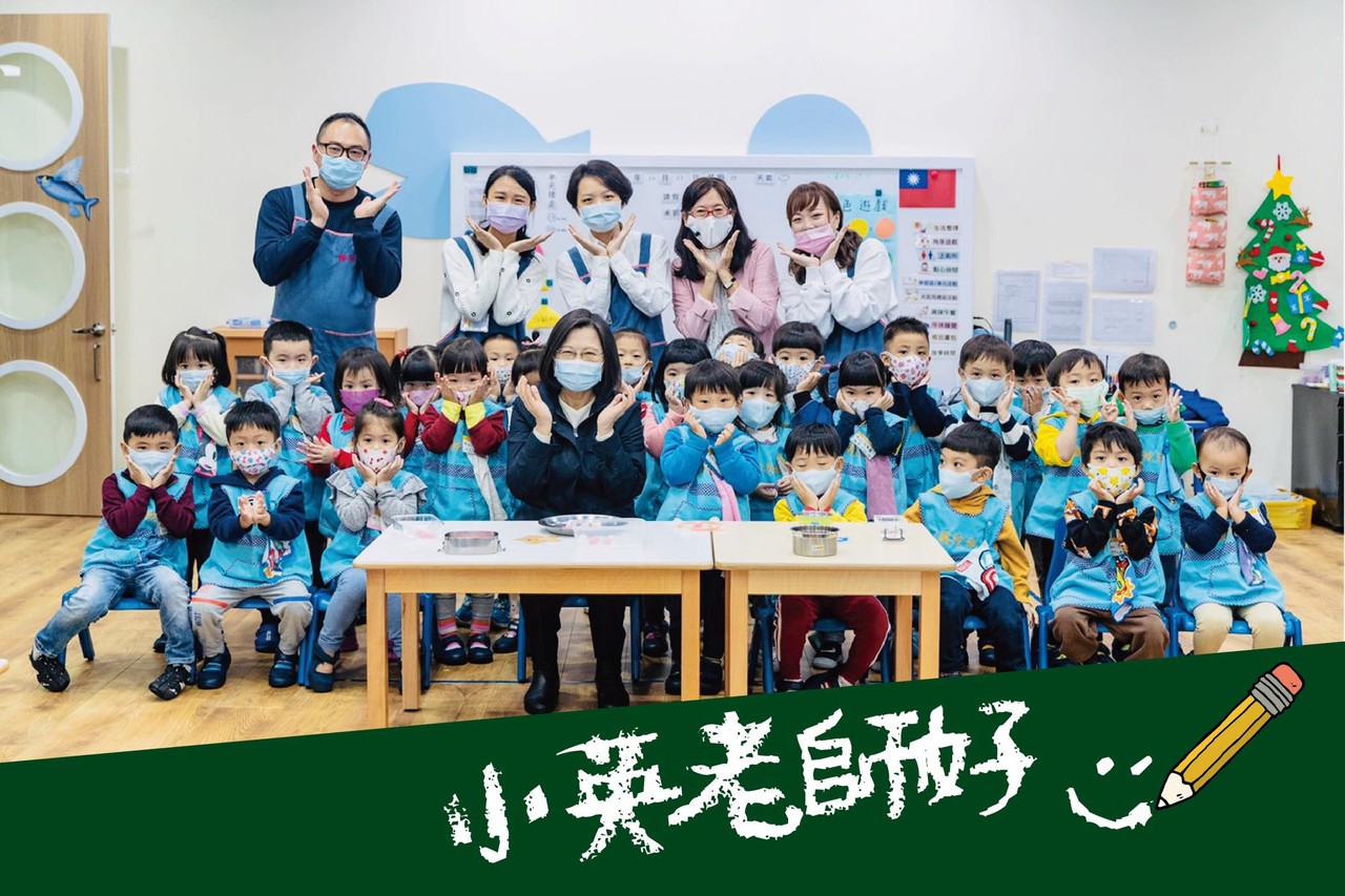 總統蔡英文17日上午前往台北市中山區訪視,「國防部大直非營利幼兒園」。國防部發言人表示,幼兒園今天迎來一位大來賓小英老師,「爸媽守衛疆土,孩子我們照顧;將與基層官兵站在一起,讓專注於戰訓本務的軍職人員可兼顧工作及家庭,滿足基層官兵托育需求!」