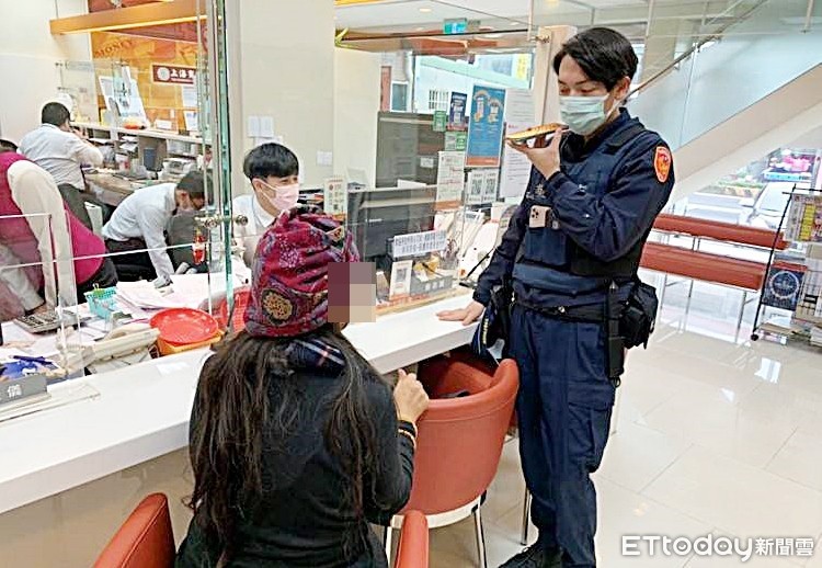 ▲桃園市黃姓婦人18日上午在觀音區某銀行欲匯款10萬元,員警勸阻黃婦小心被詐騙。(圖/記者沈繼昌翻攝)
