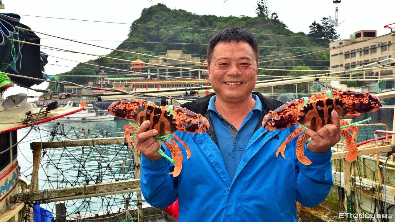 ▲捕蟹漁民代表吳兩成手持花蟹,邀請大家來吃「萬里蟹」。(圖/新北市漁業處提供,下同)
