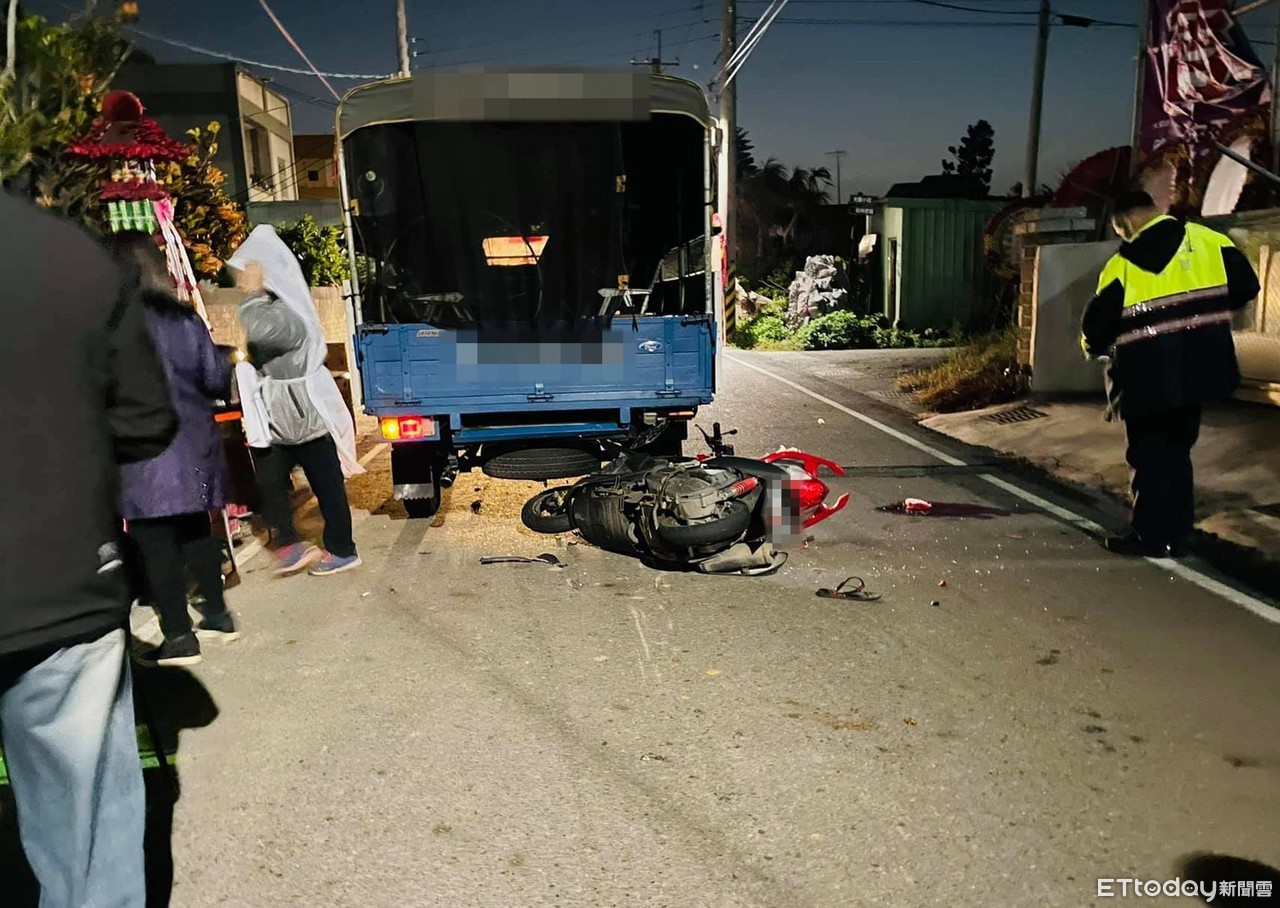 ▲18日清晨陳姓騎士撞上另一處告別式喪家的陣頭車,傷勢嚴重,19日傳出已不治。(圖/記者唐詠絮翻攝)