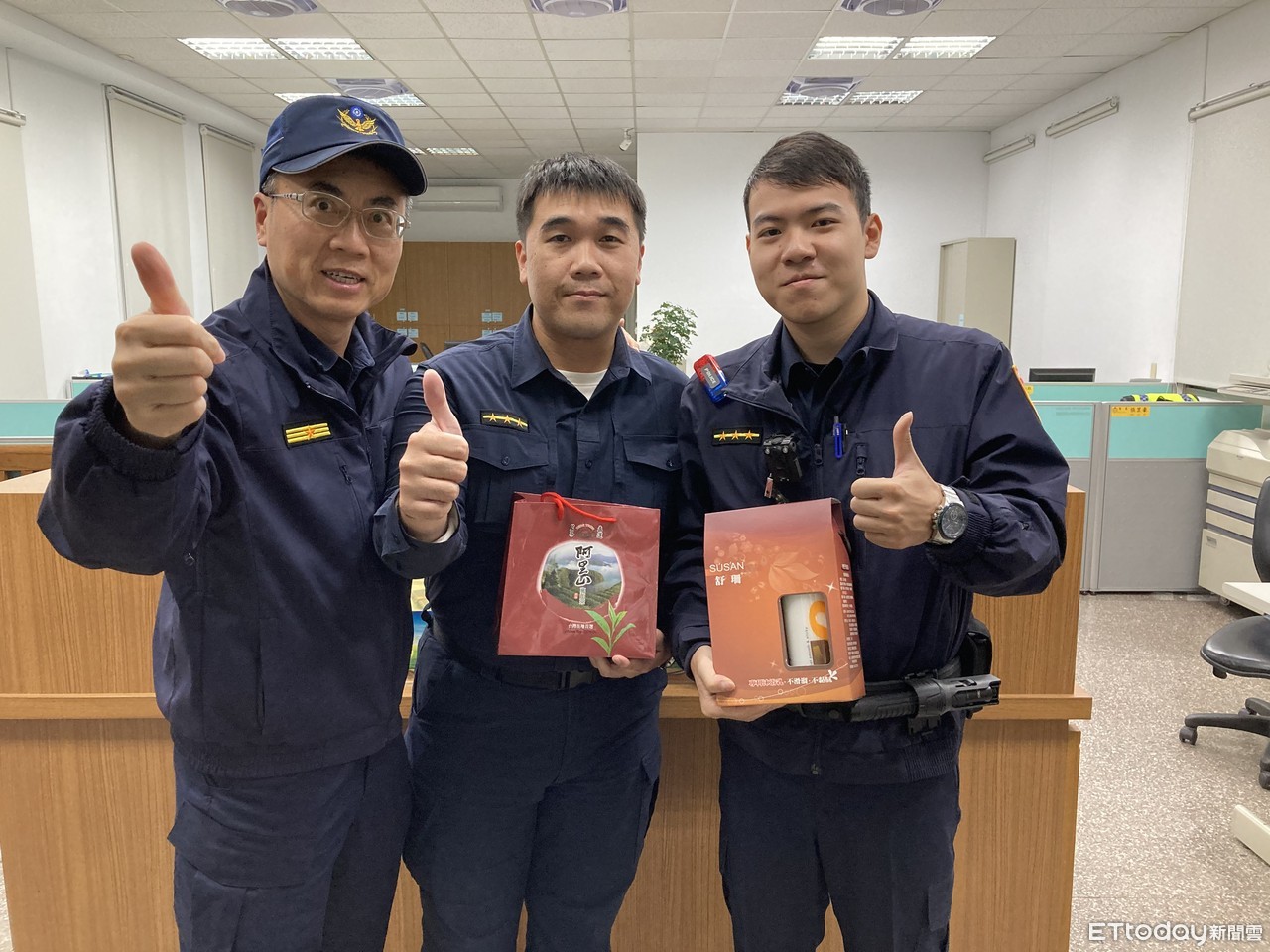 ▲台南市學甲分局將軍分駐所警員姜育志(中)、張罡豪主動積極,成功攔阻民眾遭詐騙,學甲分局長翁誌宏(左)十分肯定。(圖/記者林悅翻攝,下同)