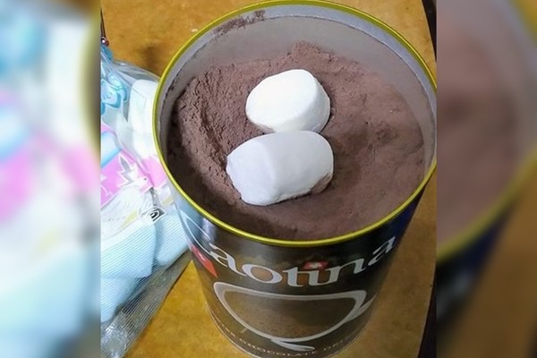 這名女子在臉書社團「全聯消費經驗老實說」上分享,他們家中秋節烤棉花糖,還有剩下許多,因此拿了2顆丟進可可粉罐裡,可以當作乾燥劑,相當實用。