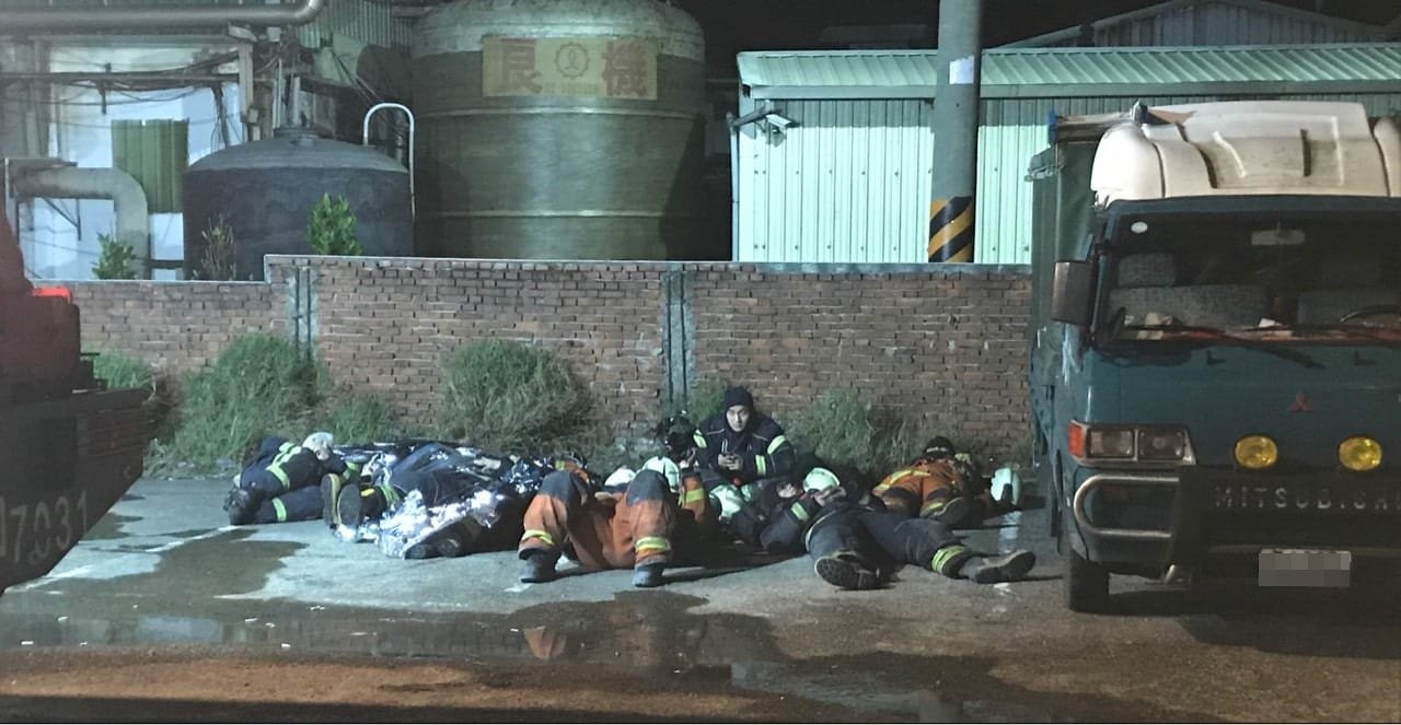 ▲消防人員累癱。(圖/翻攝「蘆竹南崁資訊大小事分享團」臉書社團,下同)