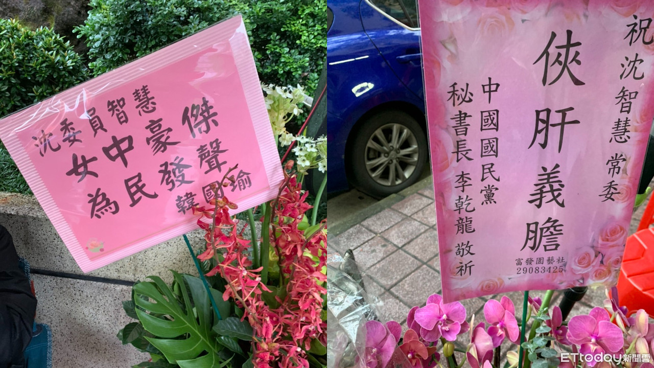 ▲韓國瑜、李乾龍送花籃為沈智慧打氣。(圖/記者徐政璿攝)
