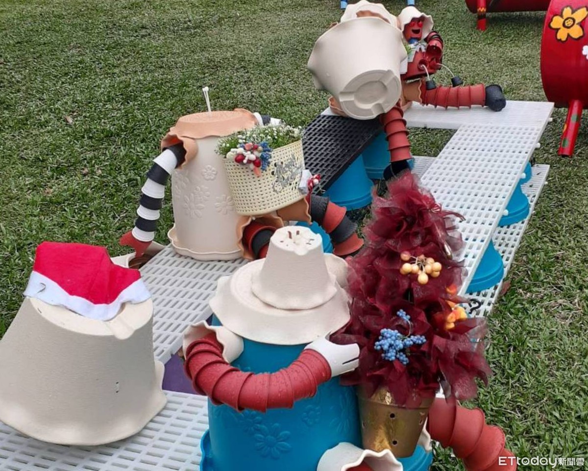 員林公園內除了有用水桶、大型廢油桶製成6隻型態不同、色彩繽紛的鐵牛外,公所也布置聖誕節氣氛,邀請來自雲林北港的「帶偶回家工作室」在公園水池廣場前,以花盆為素材創作花盆人偶,並在樹上掛滿馬卡龍色的花盆燈飾,加上點綴藍白水滴燈飾,以妝點的手法為廣場做設計,讓白天及夜晚充滿溫馨氣息。