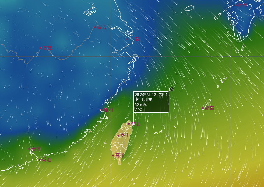 ▼跨年恐有寒流來襲,圖氣象局風場預報顯示圖顯示跨年當天氣溫。(圖/氣象局)